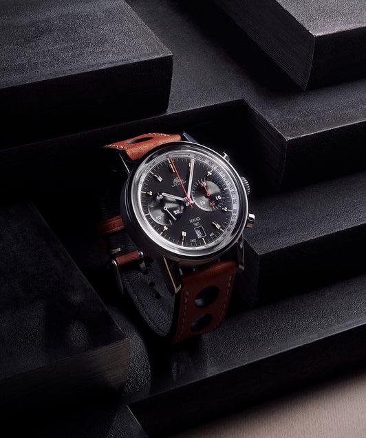 The Urho chronograph exudes the charm of speed and the aesthetics of the 1970s. The user of the Urho chronograph refuses to compromise on his style.